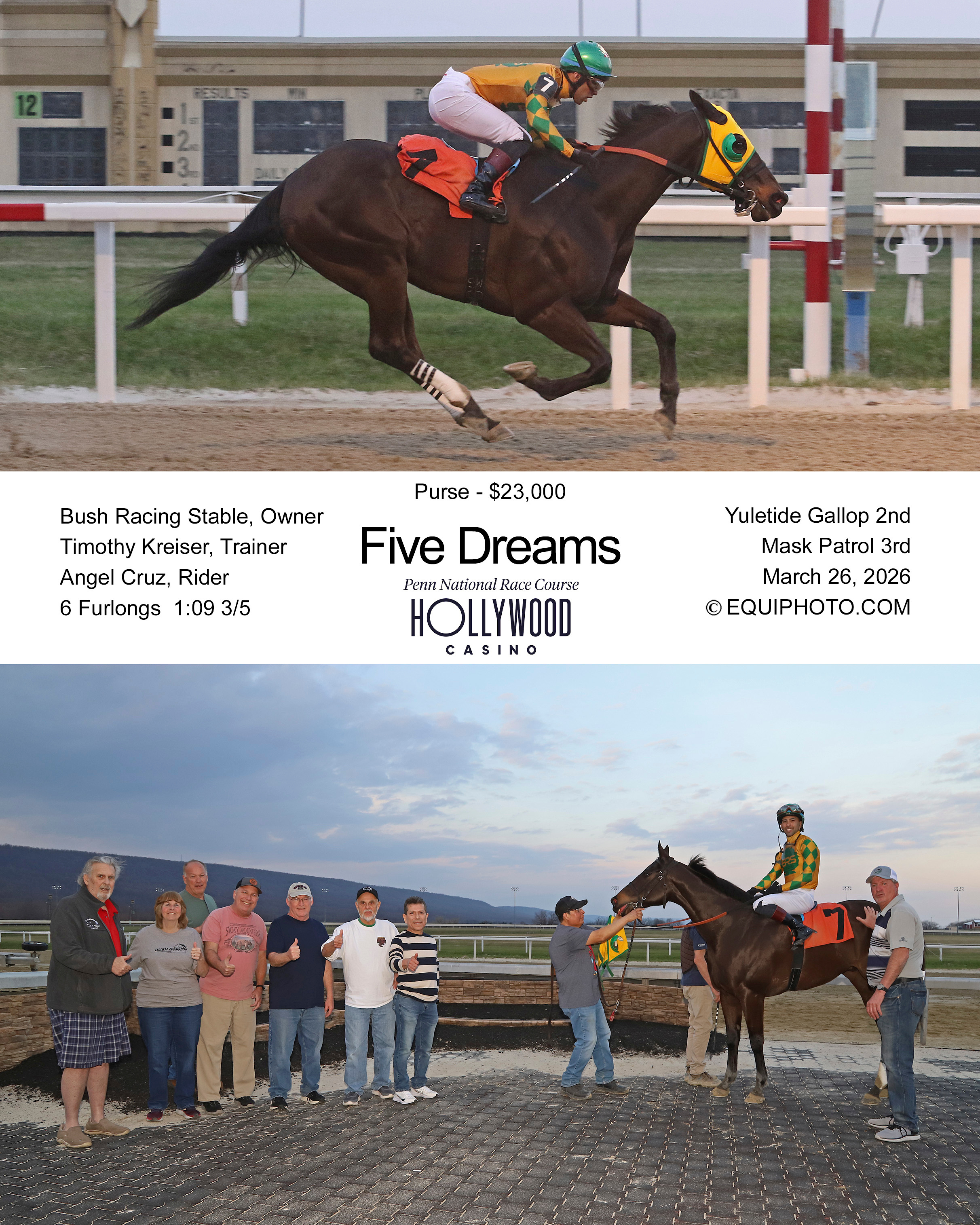 | Mar 26, 2026 | Penn National | Clm 16000b | 6f | 1st/7 | $13,800 | PDF | Picture | Video |