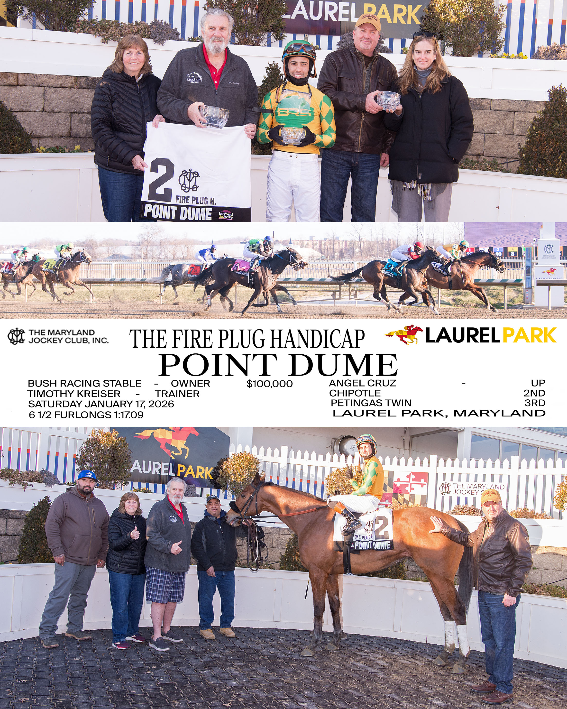 | Jan 17, 2026 | Laurel Park | Fire Plug Stakes 100k | 6.5f | 1st/9 | $60,000 | PDF | Picture | Video |
